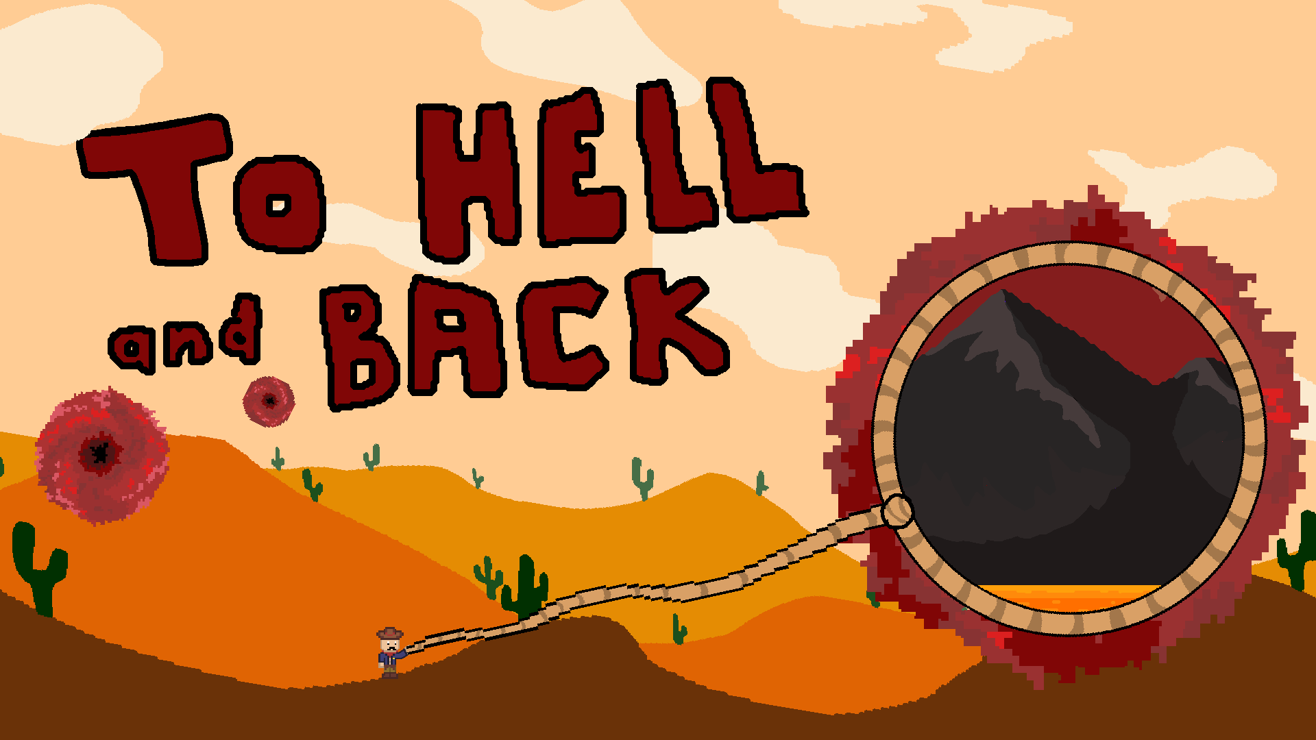 You are sheriff Wilson Goldberg, and you are just relaxing at a saloon with your brother Tommy when a demon appears through a portal and kidnaps him. You exist in a world where it's well known that demons exist, but it's unknown that they can travel to and from Hell. It's also unknown that some demons can exist in the overworld in disguise from everyday people, but only for a period of time. One of those hidden demons happens to be in the saloon with you and they approach you. They apologize for the other demon and explain that not all of them are like that, and that they are simply people who were bad during their life and could have changed their ways since death. She tells you that she can't give you the ability to simply travel to and from the demon world, but she can enchant your lasso so it can create a portal to a specific pocket of hell that you can travel through. She sends you on your way to go rescue your brother using the newly enchanted lasso and you have to scale difficult terrain and avoid dangerous obstacles to get there.
